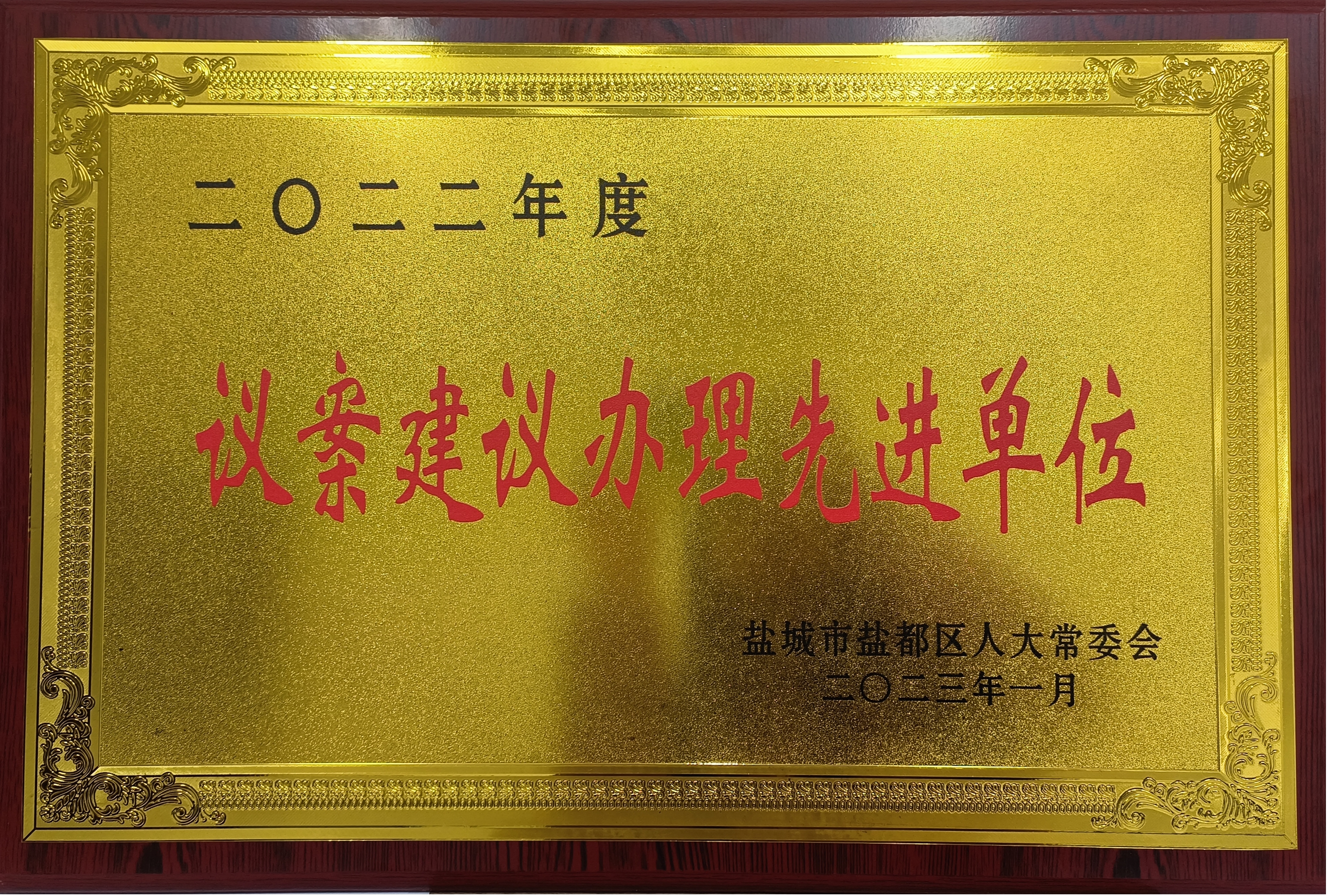 近日,集團(tuán)榮獲“2022年度鹽都區(qū)議案建議辦理先進(jìn)單位”稱號。2022年,集團(tuán)高質(zhì)量完成各項辦理任務(wù),承辦的人大代表議案建議滿意率達(dá)100%,真誠回應(yīng)了區(qū)人大代表、群眾的關(guān)切。